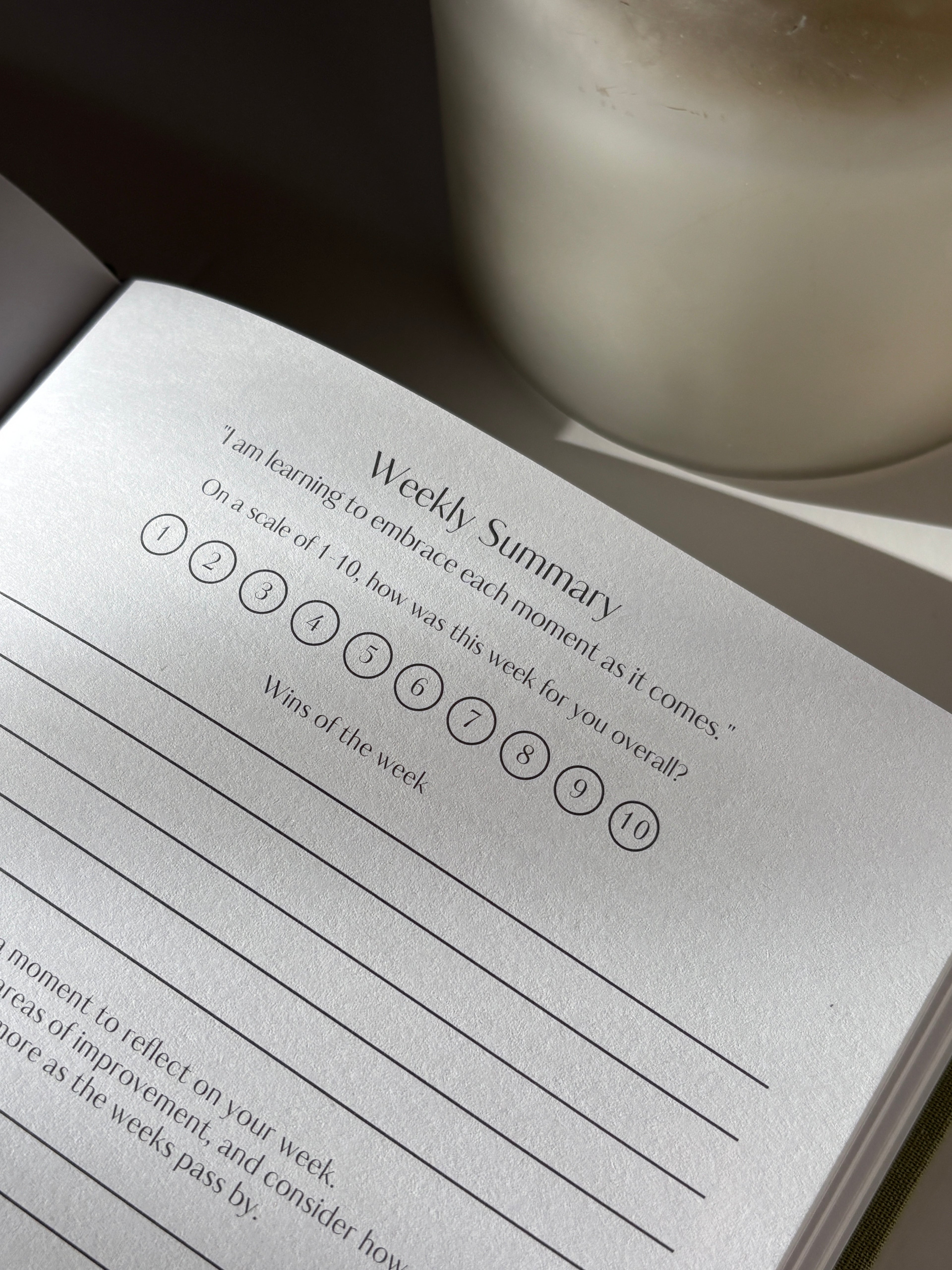 The Mind Plan Journal offers gentle structure through daily morning and evening check-ins, reflective weekly summaries, and thoughtful monthly challenges — designed to support clarity without overwhelm.